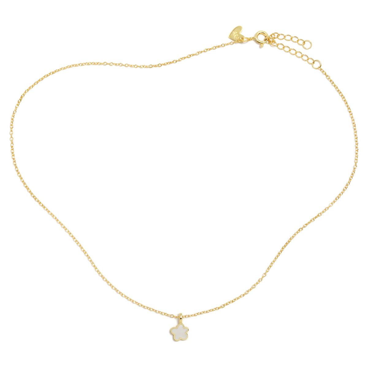 Colgante de plata de ley, nácar y baño de rodio. Cierre de mosquetón y cadena de extensión