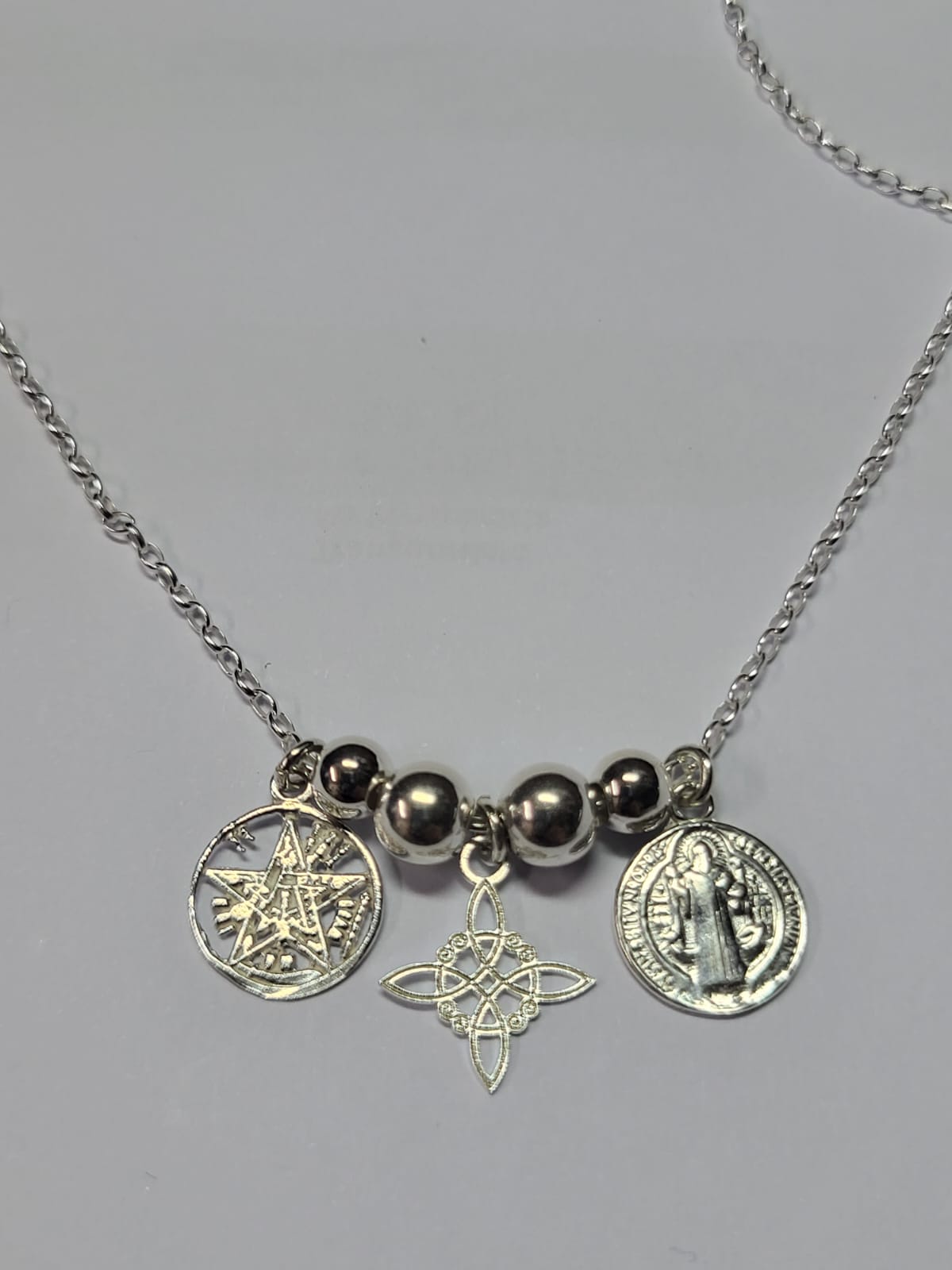 Colgante de plata de ley con Nudo de brujas, Tetragramatón y San Benito