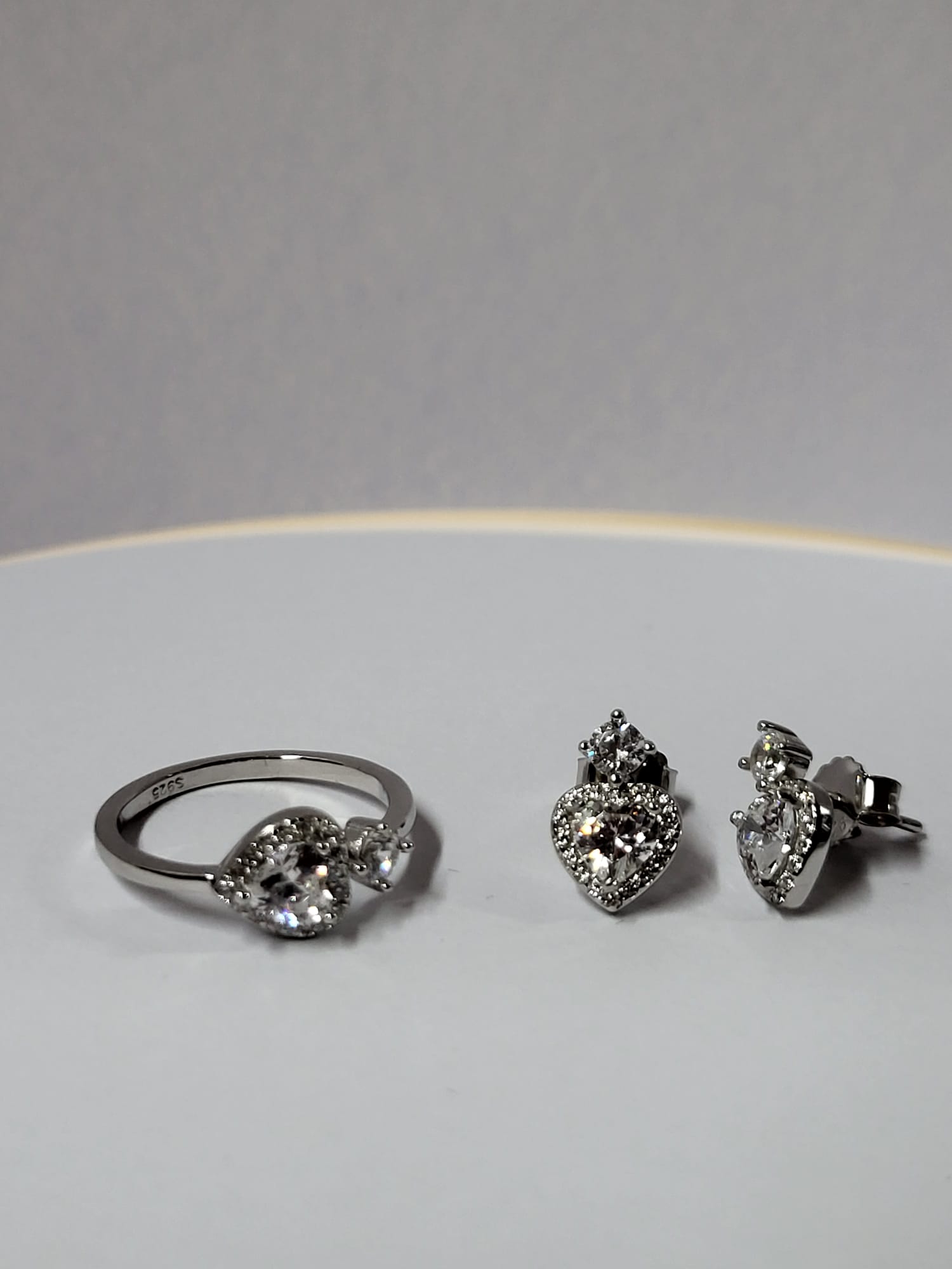 Conjunto de plata de ley y circonitas. Anillo y pendientes