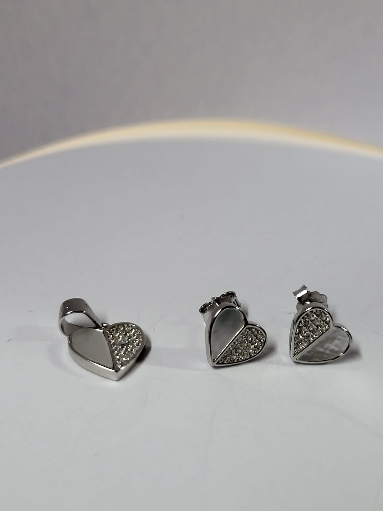 Conjunto de plata de ley y circonitas. Colgante y pendientes