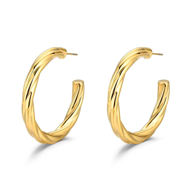 Pendientes de acero 316 chapado 18 kt aro rizado de 40 x 5 mm cierre presión waterproof