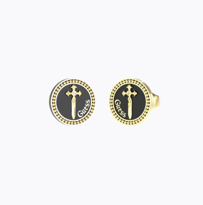 Pendientes Guess en acero inoxidable en color negro y detalles en dorado. Un diseño único y elegante para marcar la diferencia.