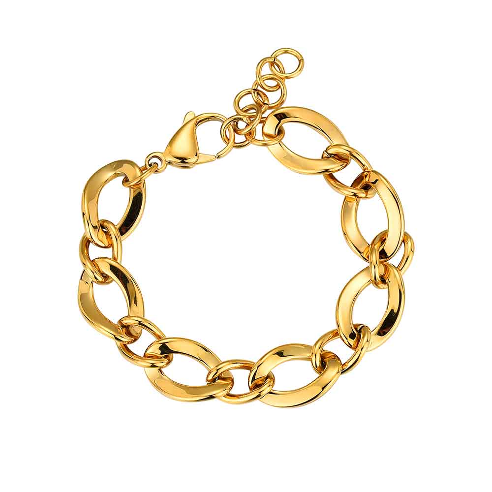 Pulsera de acero 316 chapado 18 kt eslabones cóncavos de 16.5 + 3 cm waterproof