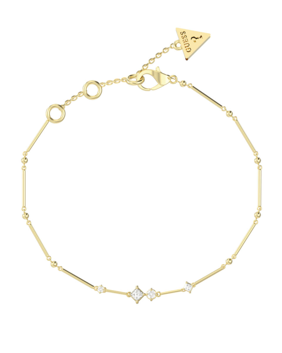 Pulsera de acero para mujer de la marca Guess. Pulsera dorada de cadena tubular con piedras decorativas. La colección Galaxy de la marca Guess te hará brillar como una estrella.