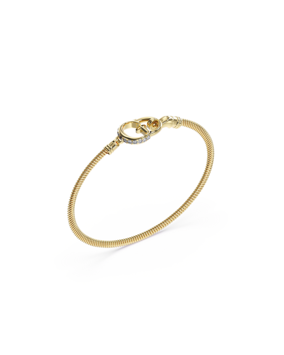 Pulsera de acero para mujer de la marca Guess. Pulsera dorada de cable con pieza central con G decorada con pedrería. El estilo y el diseño toman forma en esta colección Kalybe gracias al uso de una especial cadena en forma de cable.