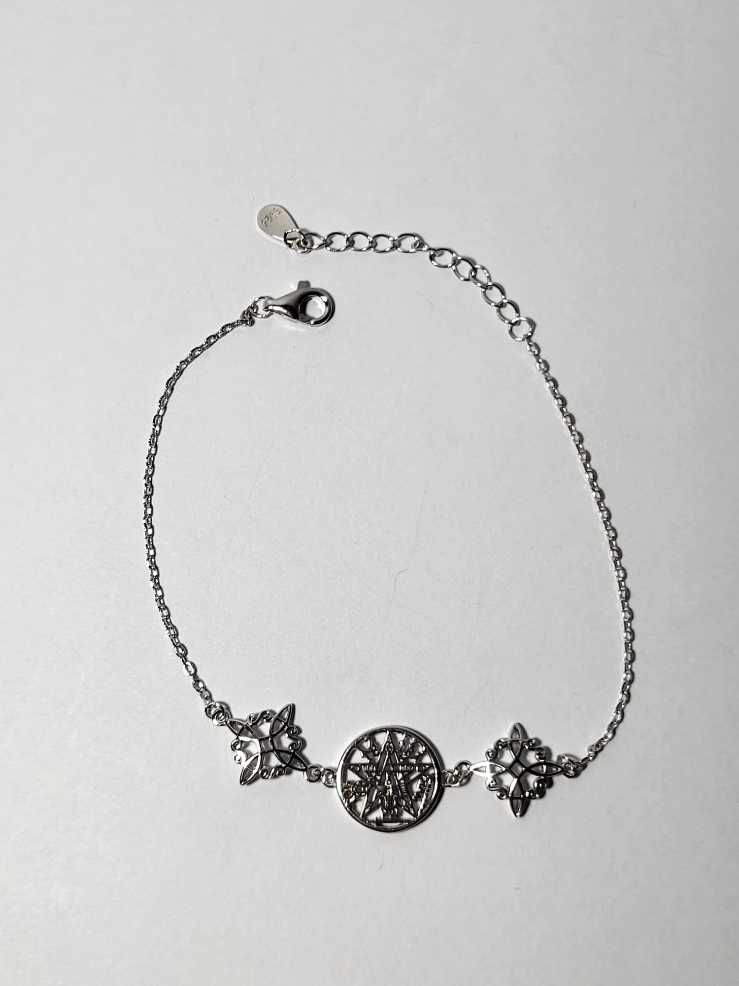 Pulsera de protección con Nudo de brujas y Tetragramaton en plata de ley