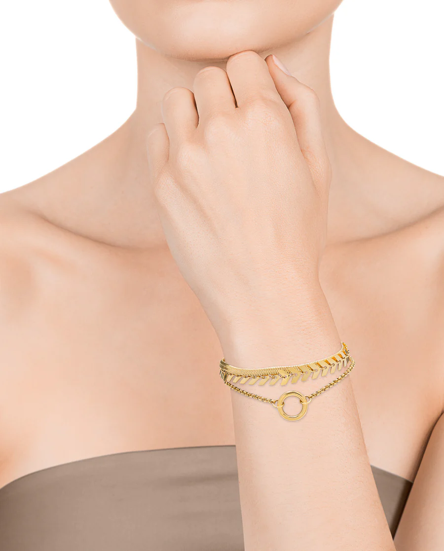 Déjate cautivar por esta pulsera ip dorado con 3 cadenas y anilla. Una pieza única que añade un toque especial a cualquier conjunto. En Viceroy, creemos en la creación de joyas significativas y hermosas. Esta joya es una expresión de elegancia y creatividad, perfecta para aquellos que aprecian el arte de la joyería y buscan piezas que realmente hagan una declaración. Largo 17,5 + 2 cm