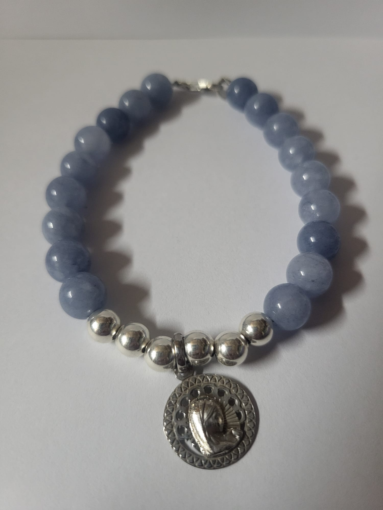 Pulsera de la Virgen Niña de plata y aguamarina de 18cm
