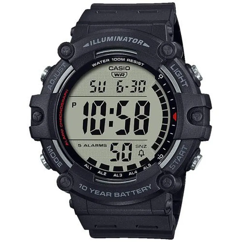 Reloj Casio Hombre AE-1500WH-1AVEF Sport Negro. Caja de resina negra. Correa de resina negra. Esfera digital. Función de hora digital. Luz LED. Cronómetro. Temporizadores. 5 alarmas diarias. Sonido de los botones. Función de despertador. Calendario automático. Sumergible 100m.