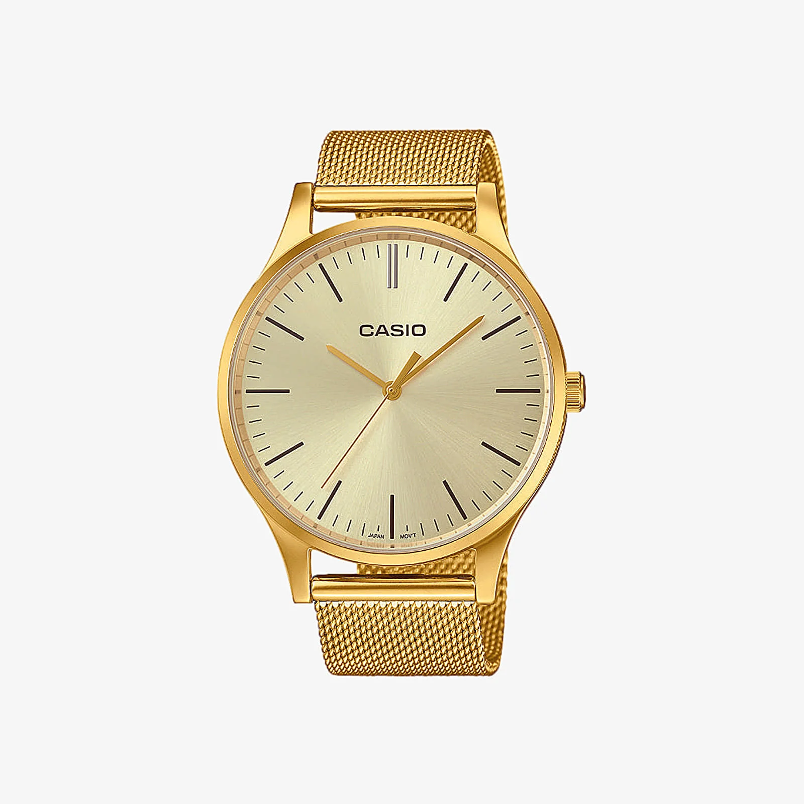 Reloj Casio Unisex LTP-E140G-9AEF Dorado. Caja y correa malla milanesa dorada. Esfera dorada. Cierre presión. Sumergible 30m.