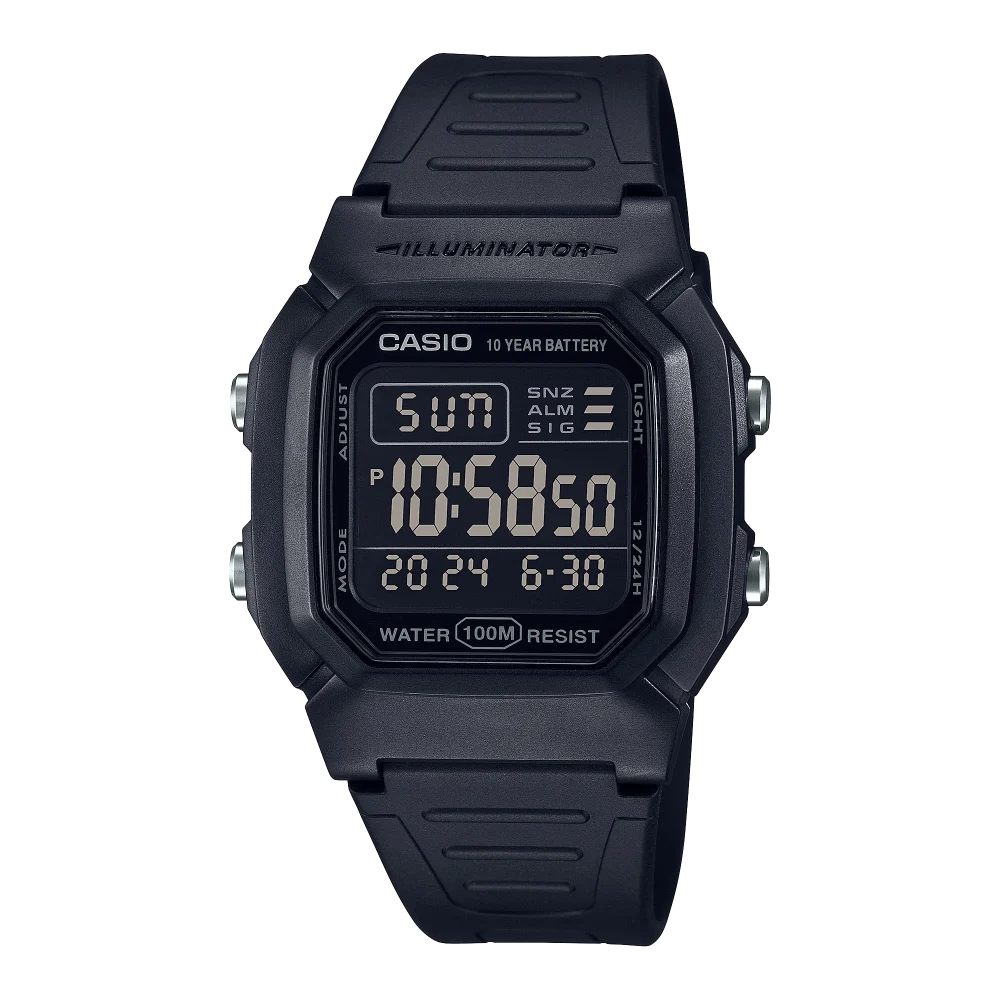 Duración de la batería de 10 años • Resistencia al agua hasta una profundidad de 10 bar • Retroiluminación LED • Hora dual