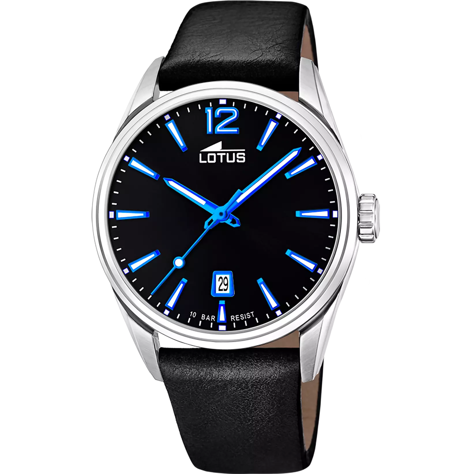 El reloj Lotus 18693/6 para hombre es una pieza impresionante con una caja de acero inoxidable y cristal mineral, además de una correa de cuero.