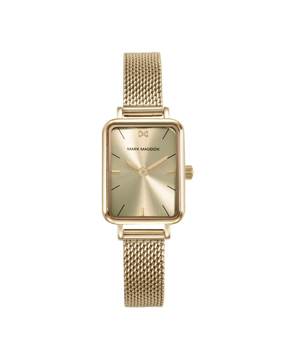 Este reloj de mujer de dos agujas destaca por su diseño sofisticado y completamente dorado. La caja de acero con acabado IP dorado y la elegante malla milanesa en el mismo tono aportan un toque de lujo y modernidad. La esfera dorada, adornada con índices y agujas horarias también en color dorado, crea un conjunto armonioso y refinado. Perfecto para la mujer que busca un accesorio elegante y versátil, este reloj es ideal para cualquier ocasión, añadiendo un toque de distinción a cualquier look.