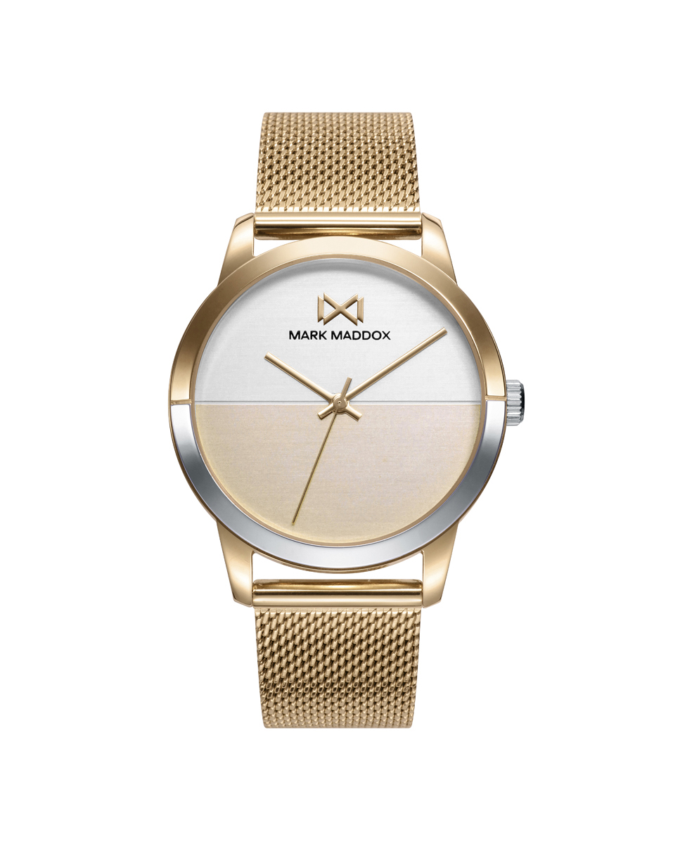 Reloj de Mujer Mark Maddox Catia tres agujas con la caja y la malla milanesa de acero con IP dorado, esfera mitad plateada y mitad dorada